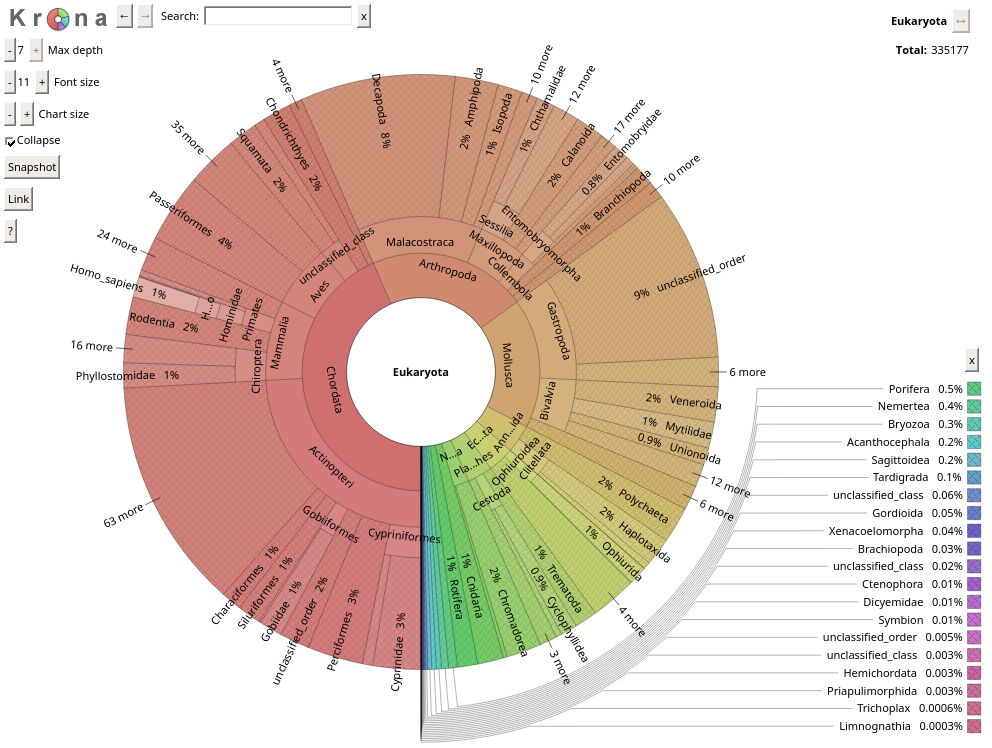 Taxonomic information of each rank. Only unique taxonomies and their counts are displayed.